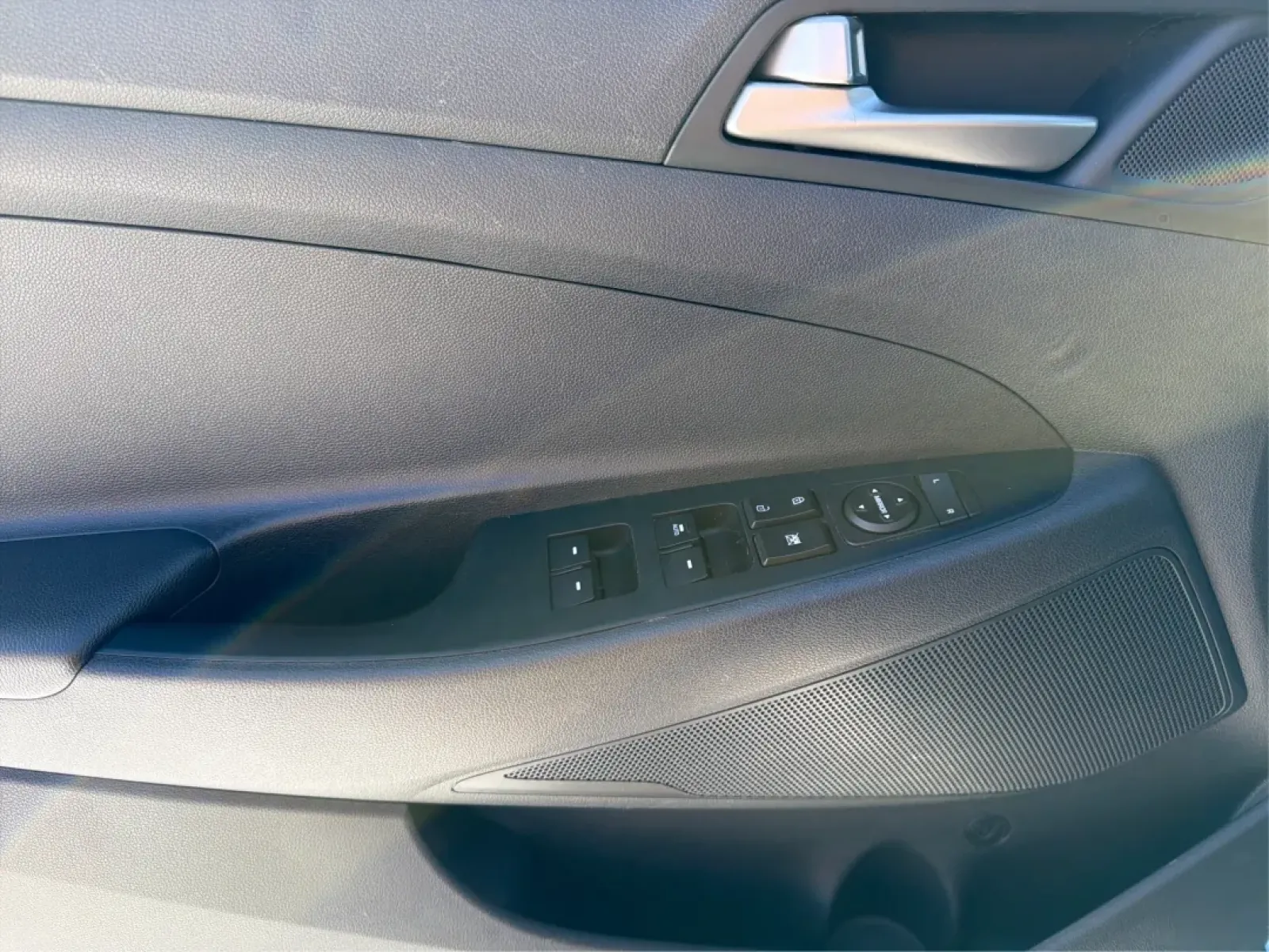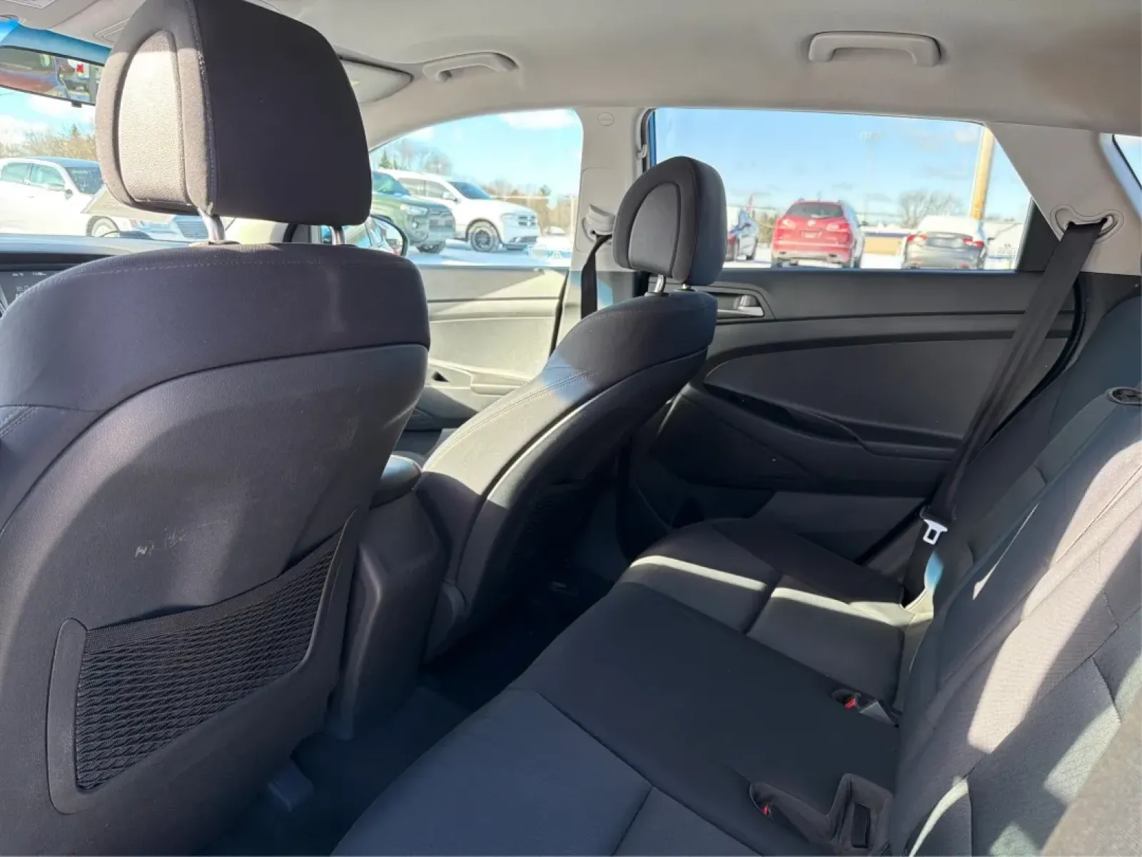 The interior of the Tucson is designed with comfort in mind. Sink into the leather seats, enjoy the climate control from the air conditioning, and stay connected with the AM/FM radio and steering wheel-mounted controls. Whether you're dropping the kids off at school or heading to the local attractions, the Tucson's spacious cabin and rear wiper make it practical for any journey.