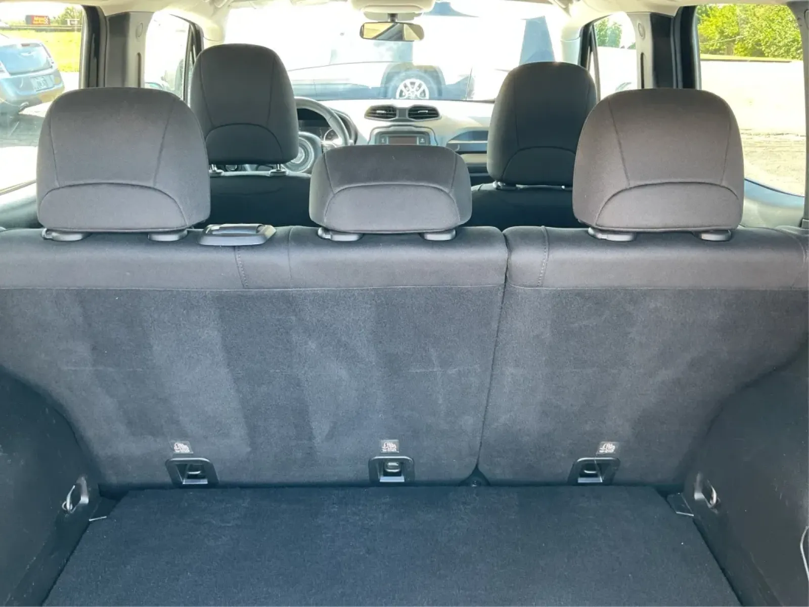 Inside, the Jeep Renegade doesn't skimp on comfort or technology. Enjoy the convenience of **automatic headlights**, **keyless entry**, and a **voice-activated telephone** system that keeps you connected while keeping your hands on the wheel. The **leather seats** and **leather steering wheel** add a luxurious feel, making every drive enjoyable. Families will appreciate the **child safety door locks** and **front side airbags** with head protection, ensuring peace of mind on every journey.
